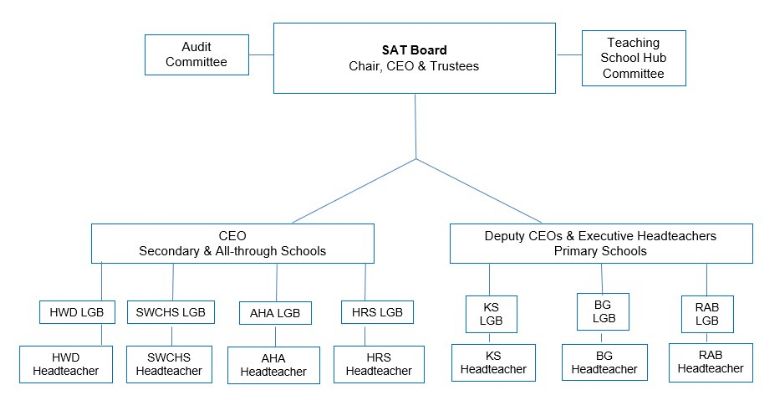 Academy Headteachers are responsible for the day-to-day management of their Academies. The Senior Leadership Teams (SLTs) in each school control the Academies at an executive level, implementing policies and reporting to their LGB. Each SLT is responsible for the day-to-day operation of their Academy, in particular organising staff, resources and students. They are responsible for the authorisation of spending within agreed budgets and for the appointment of staff, following vetting and safeguarding recruitment processes.